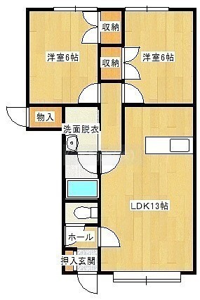 2LDK(54.49m²)└ LDK13帖 洋室6帖 洋室6帖