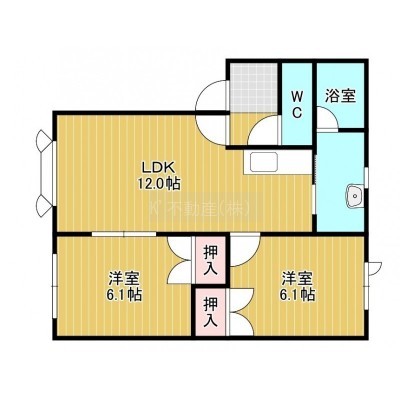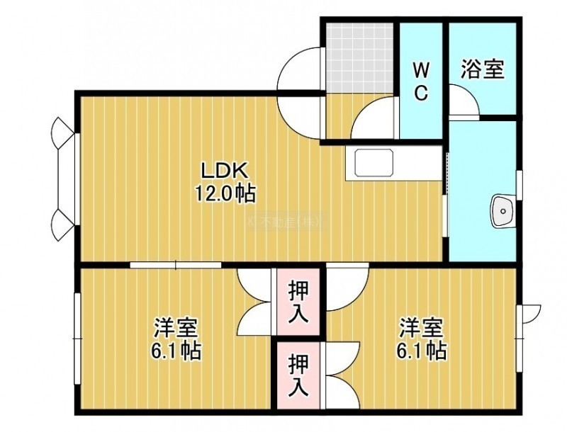 2LDK(51.75m²)└ LDK12帖 洋室6.1帖 洋室6.1帖