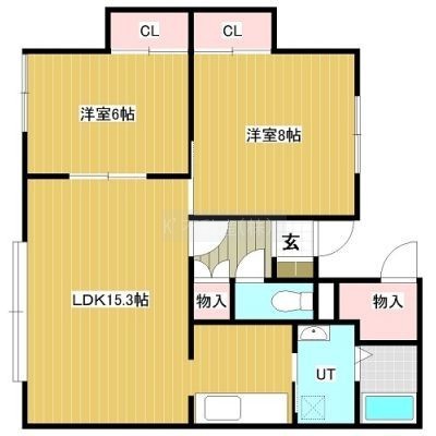 2LDK(66.02m²)└ 2階:LDK15.3帖 洋室8帖 洋室6帖
