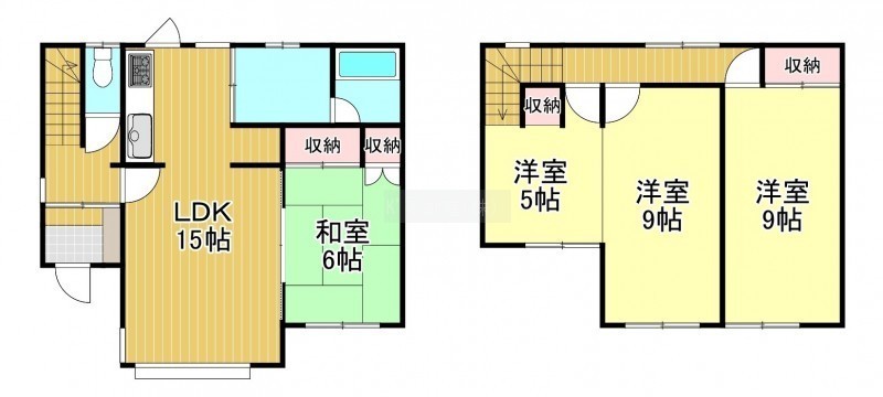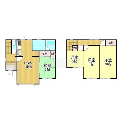 4LDK(90.25m²)└ 1階:LDK15帖 和室6帖 / 2階:洋室14帖 洋室9帖