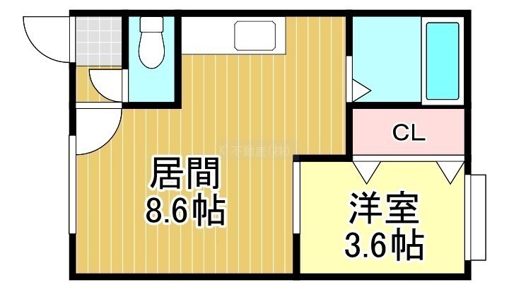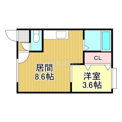 1DK(24.96m²)└ DK8.6帖 洋室3.6帖
