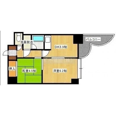 2DK(37.69m²)└ DK5.9帖 洋室6.2帖 和室4.5帖
