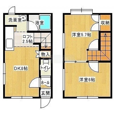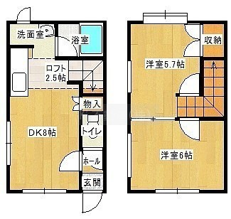 2DK(45.82m²)└ DK8帖 洋室6帖 洋室5.7帖 その他2.5帖
