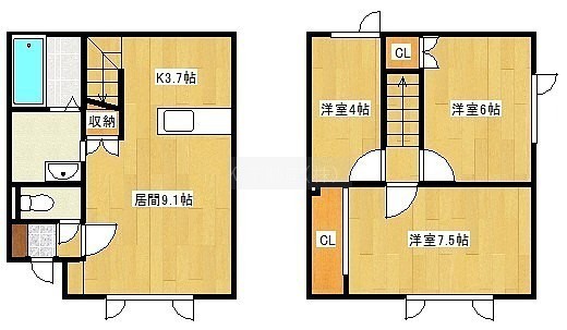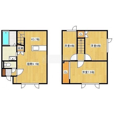 3LDK(68m²)└ 1階:LDK12.8帖 / 2階:洋室7.5帖 洋室6帖 洋室4帖
