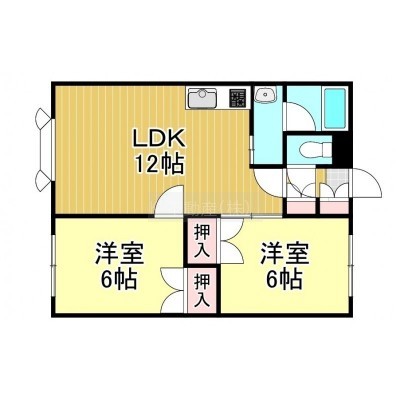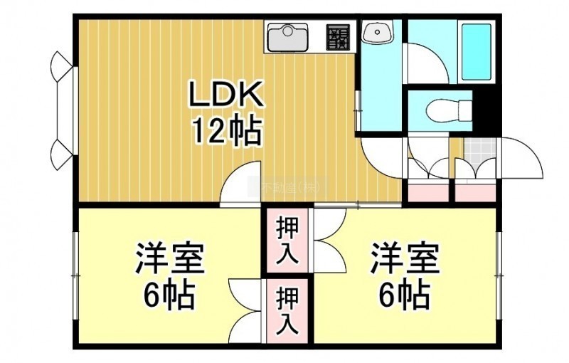2DK(52.04m²)└ DK12帖 洋室6帖 洋室6帖 / LDK12×洋6×洋6