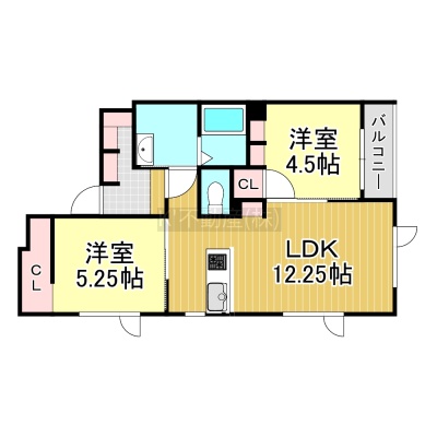 2LDK(53.96m²)└ LDK12.25帖 洋室5.25帖 洋室4.5帖