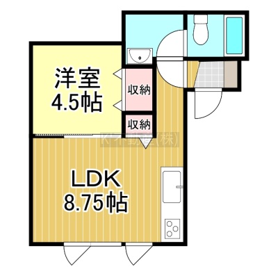 1DK(30.23m²)└ DK8.75帖 洋室4.5帖