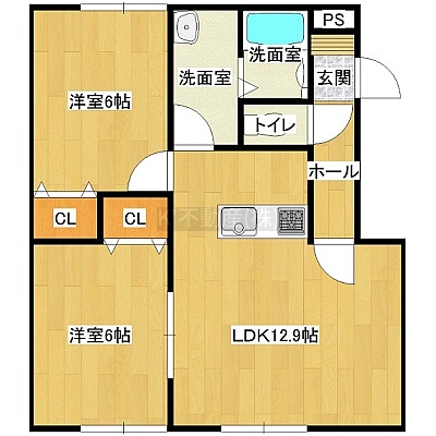 2LDK(55.07m²)└ LDK12.9帖 洋室6帖 洋室6帖