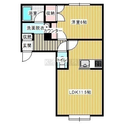 1LDK(41.3m²)└ 1階:LDK12.6帖 洋室6帖