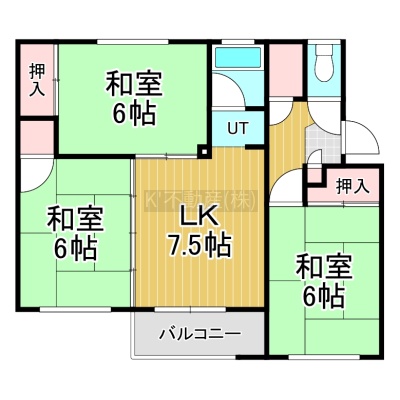 3DK(55.58m²)└ DK7.5帖 洋室6帖 洋室6帖 洋室6帖