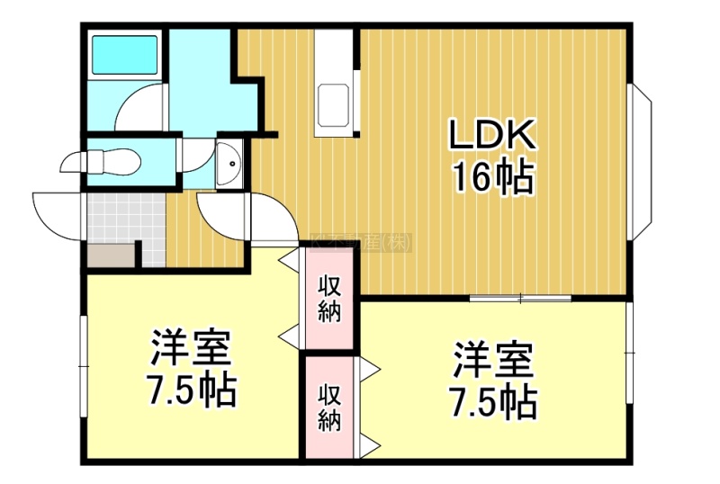 2LDK(62.83m²)└ LDK16帖 洋室7.5帖 洋室7.5帖