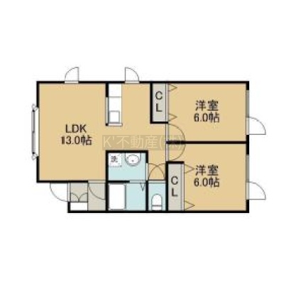 2LDK(57.75m²)└ LDK13帖 洋室6帖 洋室6帖