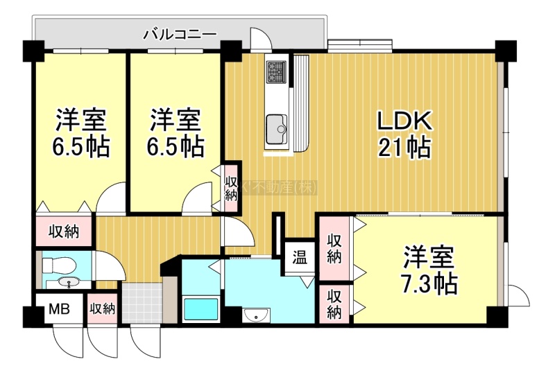 3LDK(91.69m²)└ LDK21帖 洋室7.3帖 洋室6.5帖 洋室6.5帖