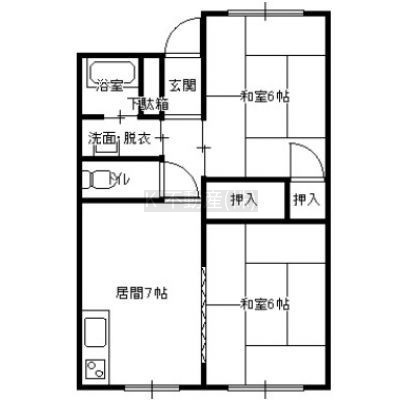 2DK(45.55m²)└ DK7帖 洋室6帖 洋室6帖