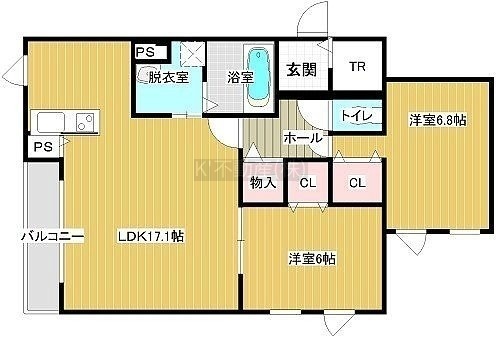 2LDK(68.87m²)└ LDK17.1帖 洋室6.8帖 洋室6帖