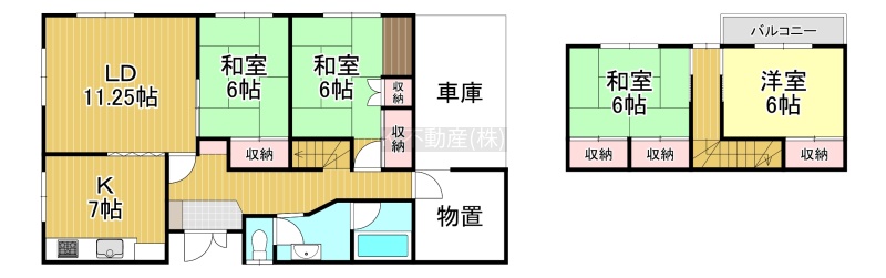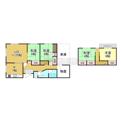 4LDK(104.89m²)└ 1階:LDK18.2帖 和室6帖 和室6帖 / 2階:和室6帖 洋室6帖