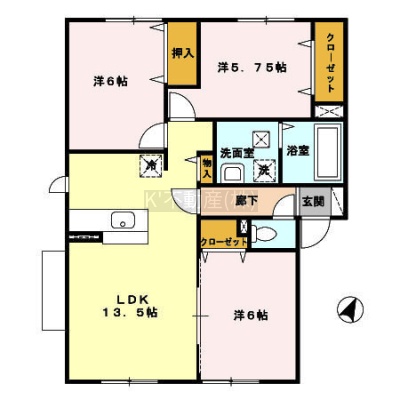 3LDK(72.11m²)└ LDK13.5帖 洋室6帖 洋室6帖 洋室5.75帖