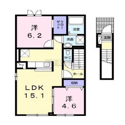 2LDK(60.78m²)└ LDK15.1帖 洋室6.1帖 洋室4.6帖