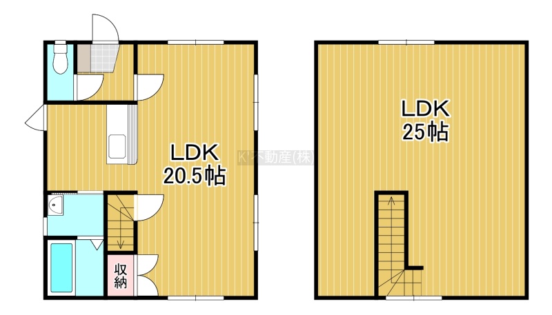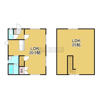 1LDK(93.67m²)└ 1階:LDK20.5帖 / 2階:洋室25帖
