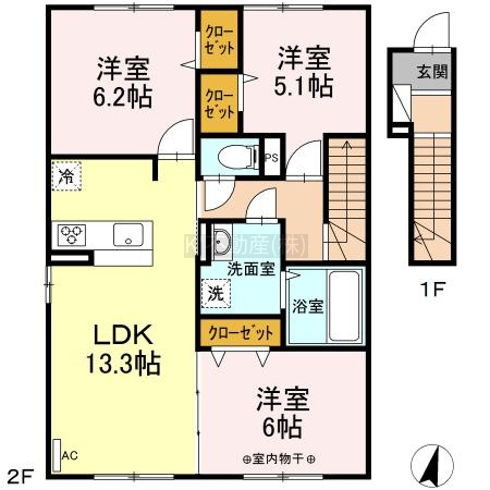3LDK(74.04m²)└ LDK13.3帖 洋室6.2帖 洋室6帖 洋室5.1帖