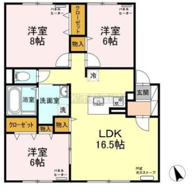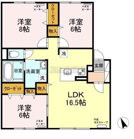3LDK(81.28m²)└ 1階:LDK16.5帖 洋室8帖 洋室6帖 洋室6帖