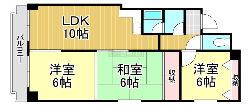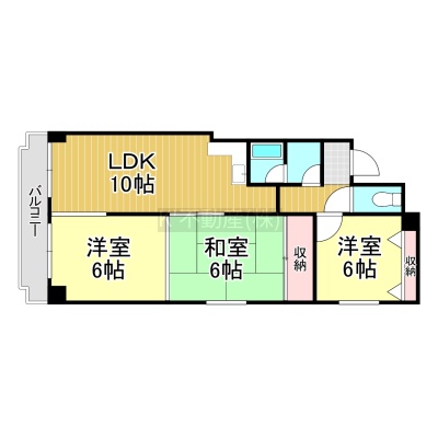 3LDK(64.11m²)└ LDK10帖 洋室6帖 洋室6帖 和室6帖