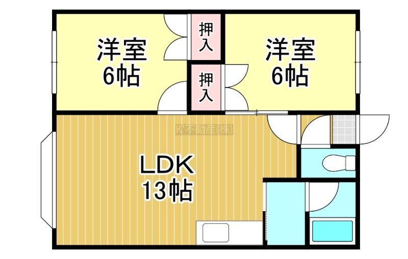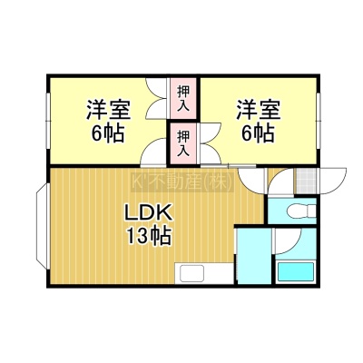 2LDK(52.17m²)└ LDK13帖 洋室6帖 洋室6帖
