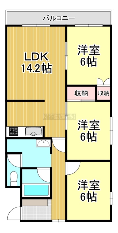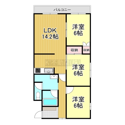 3LDK(70.68m²)└ 5階:LDK14.2帖 洋室6.2帖 洋室6帖 洋室6帖
