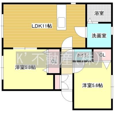 2LDK(52.12m²)└ LDK11帖 洋室5.8帖 洋室5.6帖
