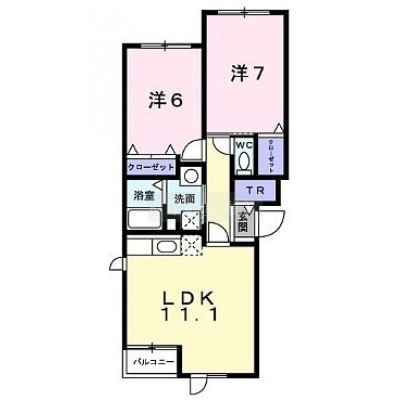 2LDK(55.25m²)└ 2階:LDK11.1帖 洋室7帖 洋室6帖