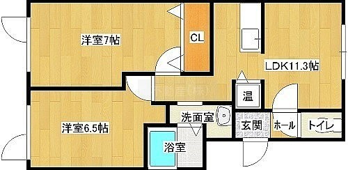 2LDK(50.14m²)└ 1階:LDK11.3帖 洋室7帖 洋室6.5帖