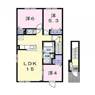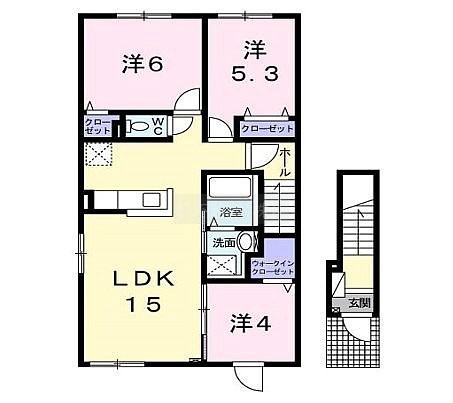 3LDK(66.85m²)└ 2階:LDK15帖 洋室6帖 洋室5.3帖 洋室4帖