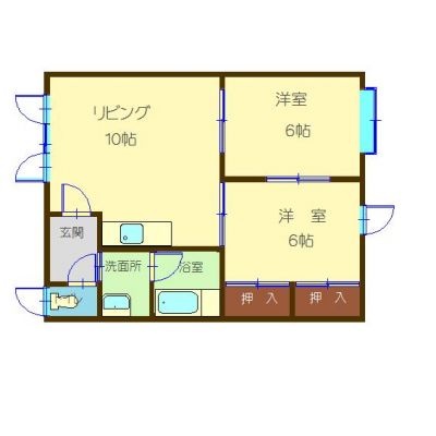 2DK(42.64m²)└ DK10帖 洋室6帖 洋室6帖