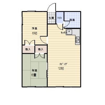 2DK(45.92m²)└ DK12帖 洋室6帖 和室6帖