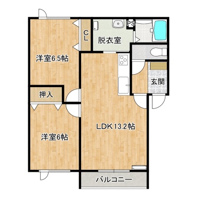 2LDK(56.05m²)└ 3階:LDK13.2帖 洋室6.5帖 洋室6帖