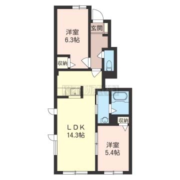 2LDK(56m²)└ LDK14.3帖 洋室6.3帖 洋室5.4帖