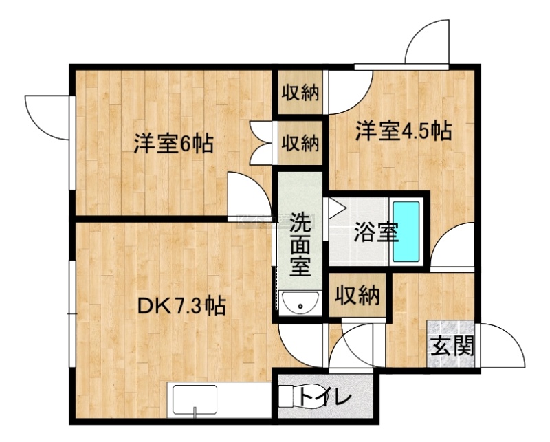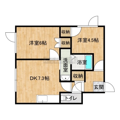 2DK(38.05m²)└ DK7.3帖 洋室6帖 洋室4.5帖