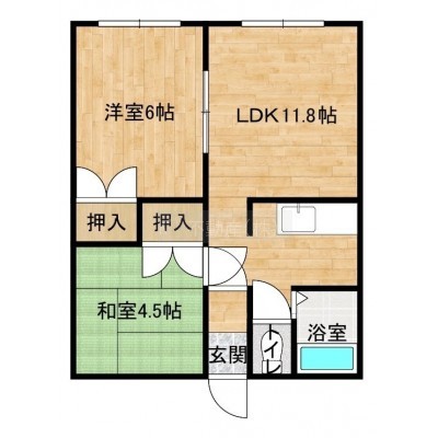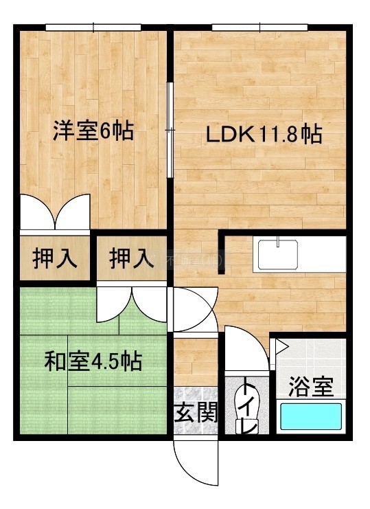 2LDK(43.6m²)└ DK11.8帖 洋室6帖 和室4.5帖