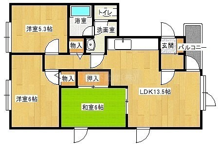 3LDK(70.12m²)└ LDK13.5帖 洋室6帖 和室6帖 洋室5.3帖