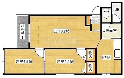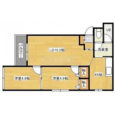 2LDK(55.52m²)└ LD10.2帖 K5帖 洋室4.9帖 洋室4.9帖