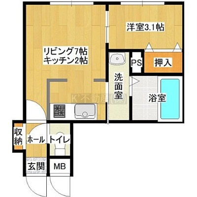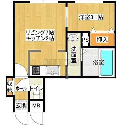 1DK(30.61m²)└ DK9帖 洋室3.1帖