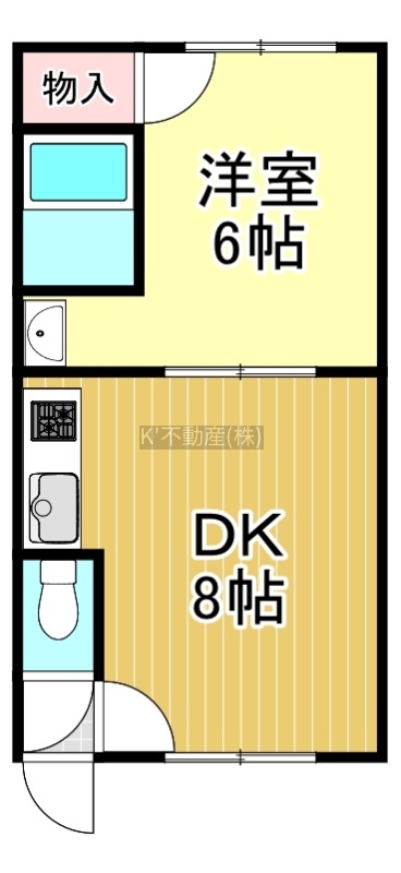 1DK└ DK8帖 洋室6帖