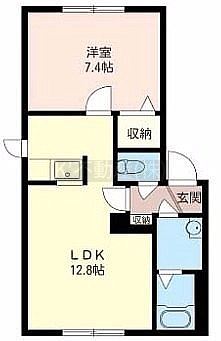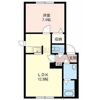 1LDK(44.3m²)└ LDK12.8帖 洋室7.4帖