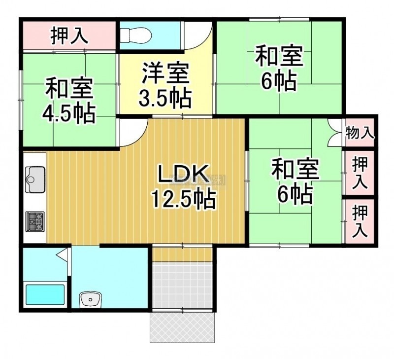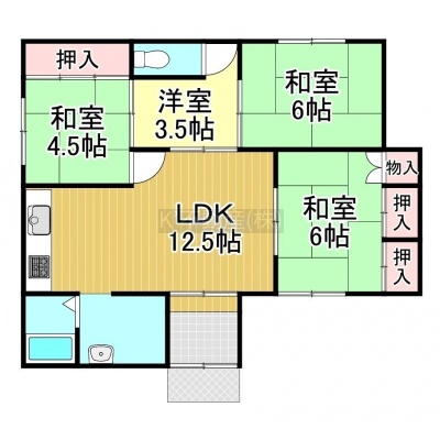 4LDK(72.87m²)└ 1階:LDK12.5帖 和室6帖 和室6帖 和室4.5帖 洋室3.5帖