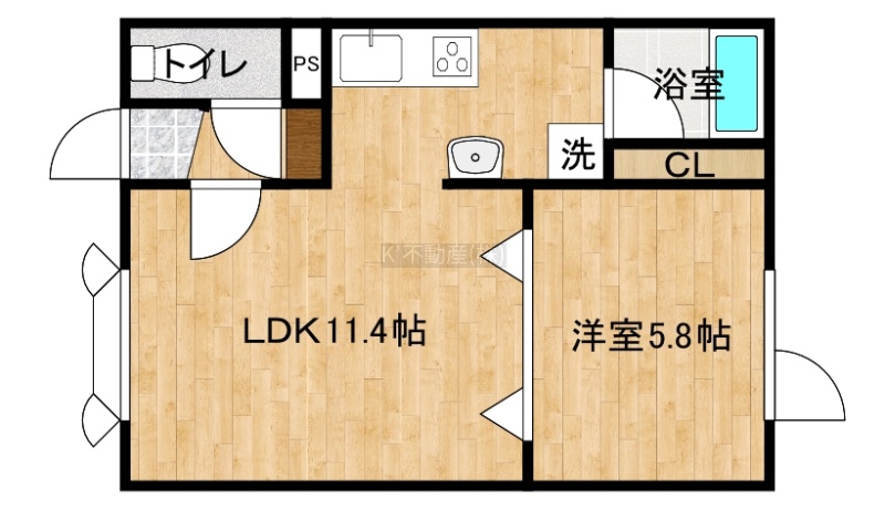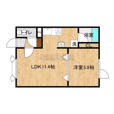 1LDK(36.43m²)└ LDK11.4帖 洋室5.8帖