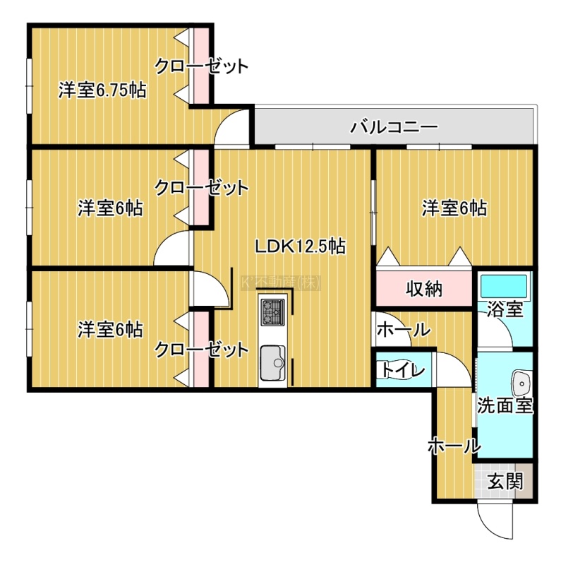 4LDK(80.16m²)└ LDK12.5帖 洋室6.75帖 洋室6帖 洋室6帖 洋室6帖