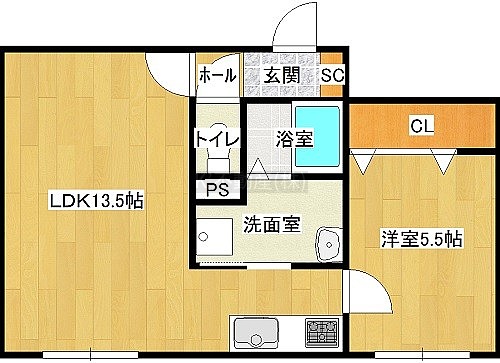 1LDK(44.72m²)└ LDK13.5帖 洋室5.5帖