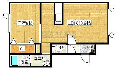 1LDK(42.46m²)└ LDK13.6帖 洋室6帖