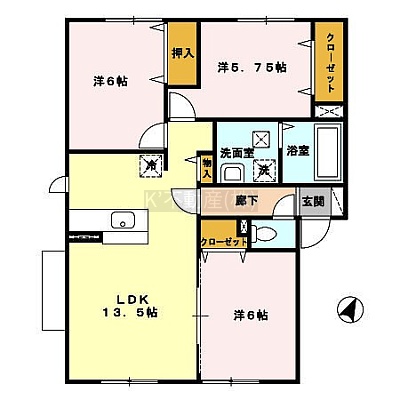 3LDK(72.11m²)└ LDK13.5帖 洋室6帖 洋室6帖 洋室5.75帖