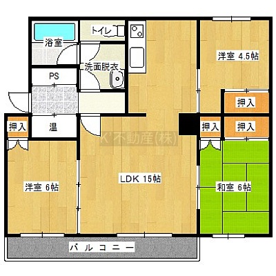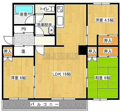3LDK(69.48m²)└ LDK15帖 洋室6帖 洋室4.5帖 和室6帖